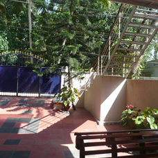 Rooms in a furnished, self contained, self catering, first floor flat with a separate entrance from the front courtyard of Camrose House are offered for rent. It is situated in a secure, quiet environment near Kovalam beach on the Arabian Sea, in rural Muttacaud, which is fifteen kilometres from Trivandrum International Airport and a ten minute rickshaw drive from Kovalam.
